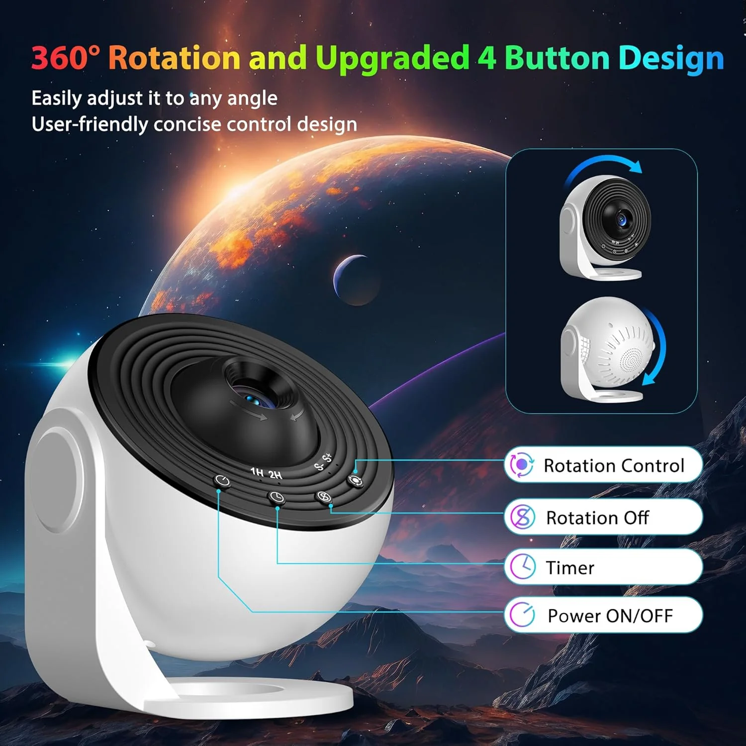 - 【Adjust the Knob to Get HD Projection】:This upgraded galaxy projector uses better optical components to present vivid colors and projector larger and brighter star images than the classic version. Please adjust the focus of the galaxy light projector by rotating the focusing head for clear and realistic imaging. ( The ultimate effect depends on the ceiling area, room lighting brightness, and the projection length and angle)