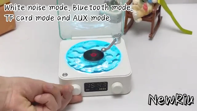 - 【Vintage Vinyl Record Player】White noise mode , Bluetooth mode, TF card mode, and AUX mode. You can choose different modes according to your needs to meet your needs in various atmospheres.Press and hold the light button for 3 seconds, then the time indicator light flashes, rotate the volume button to adjust the time!