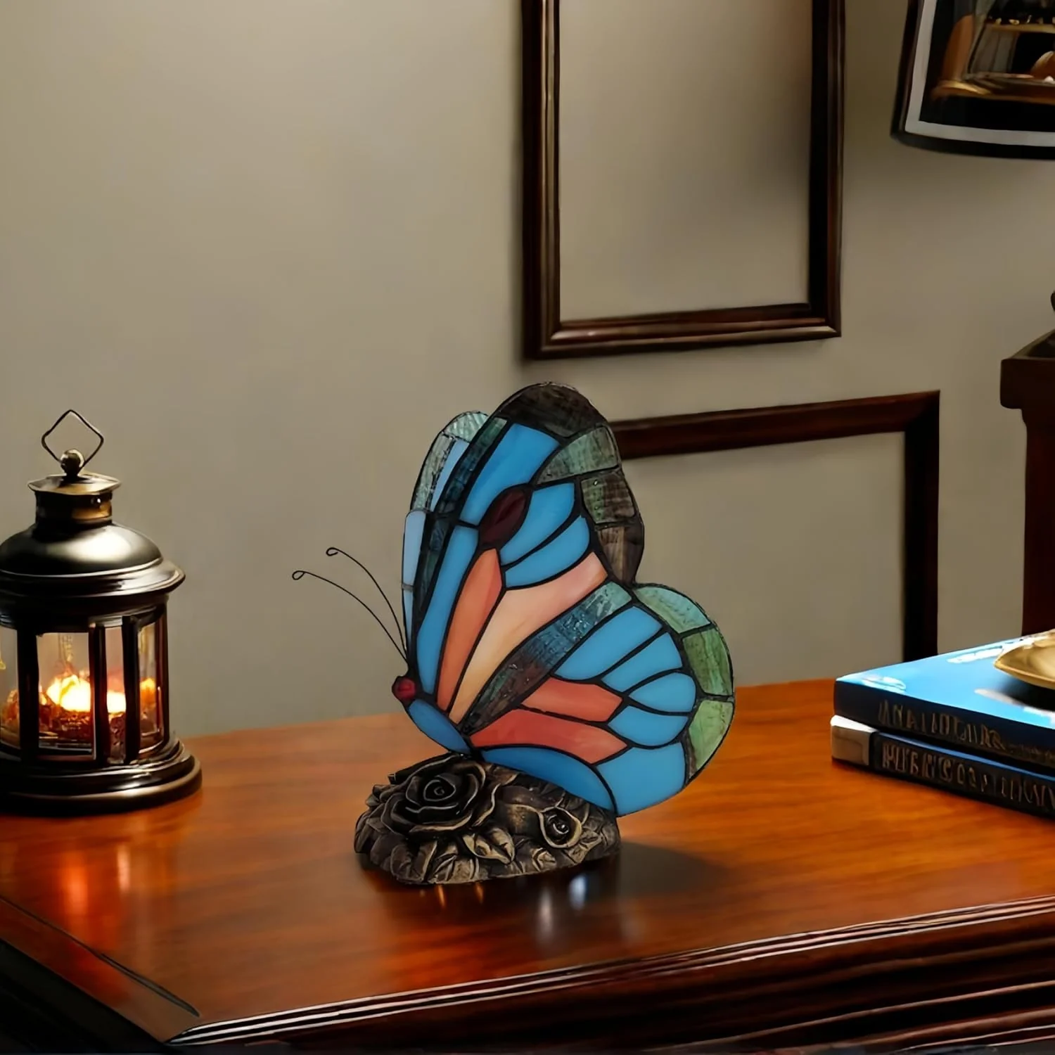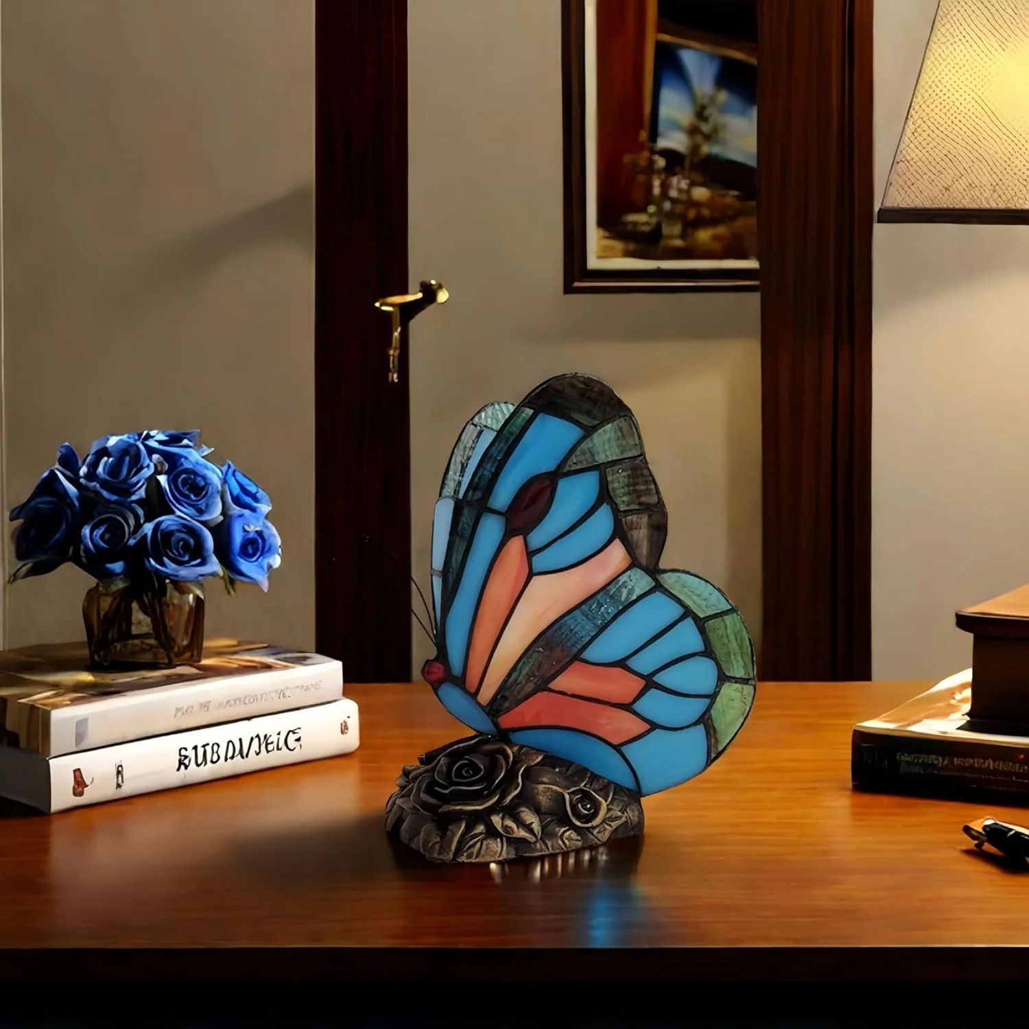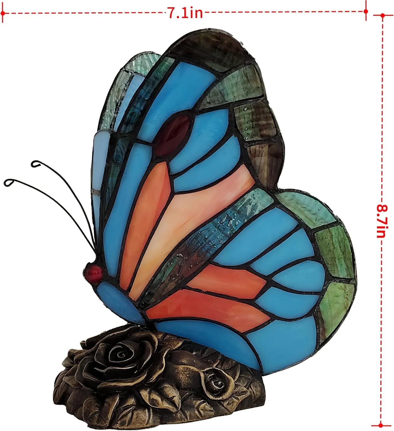 - Small Tiffany Style Butterfly Table Lamp Suitable for living room, dining room, bedside reading, bedroom, Dining Room, café, bar, or restaurant. It Can Be Used As Butterlfy Tiffany Night Light with Colorful Design, Romantic and soft lighting.