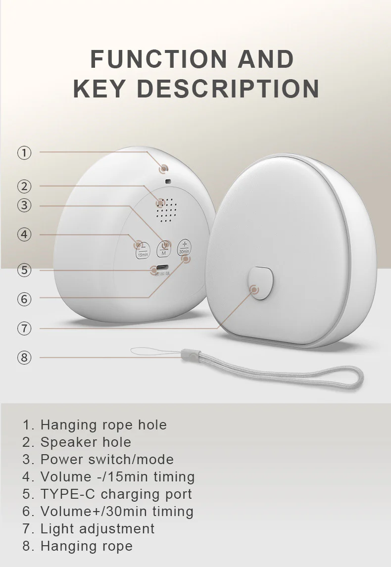 This all-in-one white noise sleep aid, colorful soft night light, and smart touch-control lamp is designed to bring calm and comfort to your baby's nighttime routine. The gentle lighting is easy on the eyes—perfect for midnight feedings or diaper changes—while soothing white noise and nature sounds help lull your little one to sleep faster and deeper.
